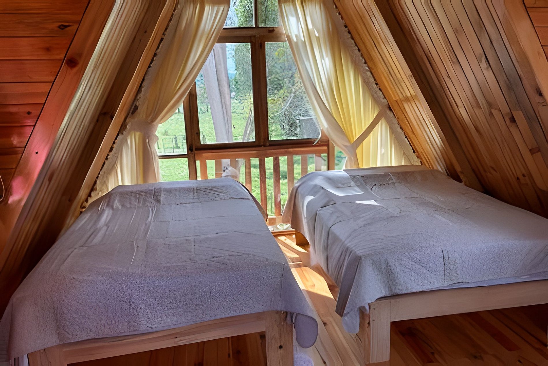 Quería una experiencia dónde esté cerca a la naturaleza, no quería un hotel común y estás cabañas tienen lo que buscaba: cerca a la plaza pero rodeada de naturaleza, zona tranquila, cabañas alpinas.